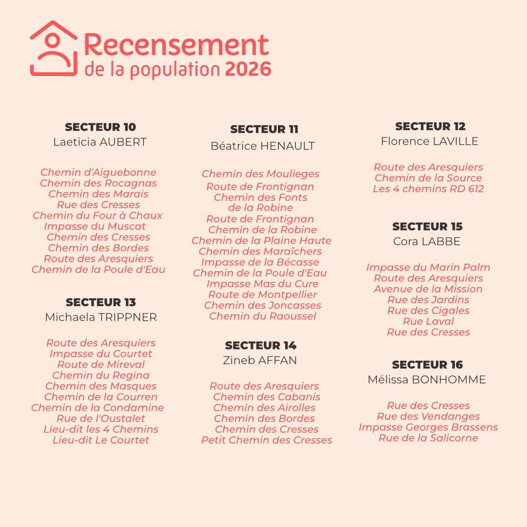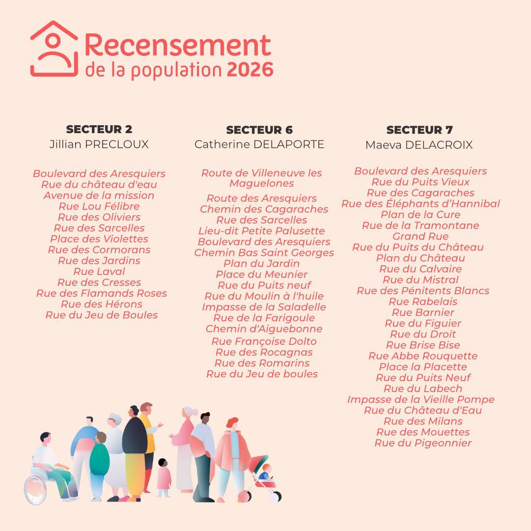 Important : En cas de doute, demandez toujours à voir la carte officielle de l’agent. Si une personne se présente comme recenseur sans figurer dans notre liste, contactez immédiatement la police municipale : 06 74 58 57 14.